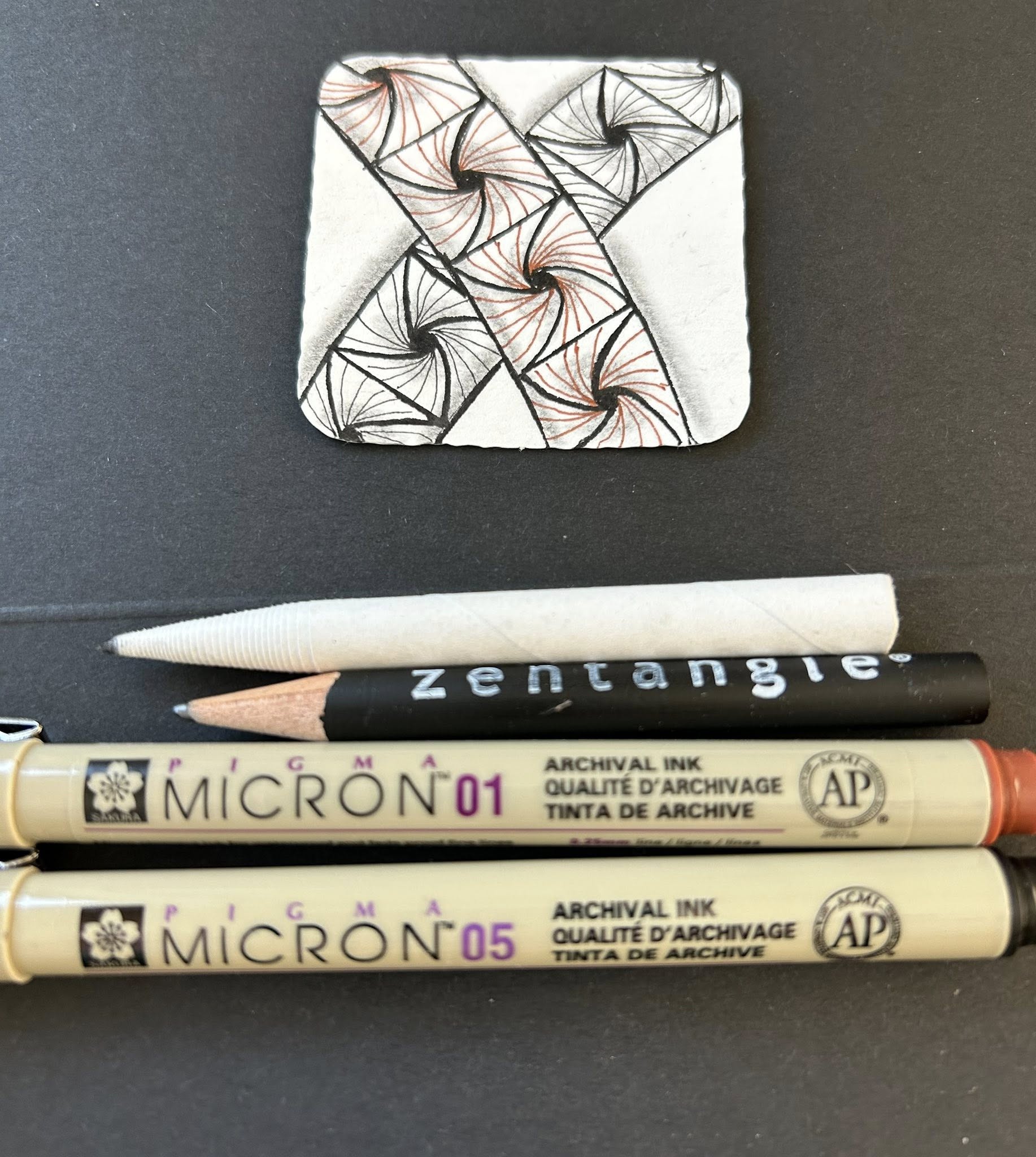 You'll need a quite place to work, a pen, pencil, blending stump or Q-tip, and drawing paper or Zentangle tile.